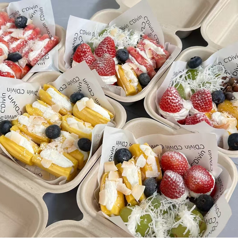 干噎冷萃酸奶夹水果打包盒垫纸野餐蛋糕寿司希腊酸奶水果夹包装盒