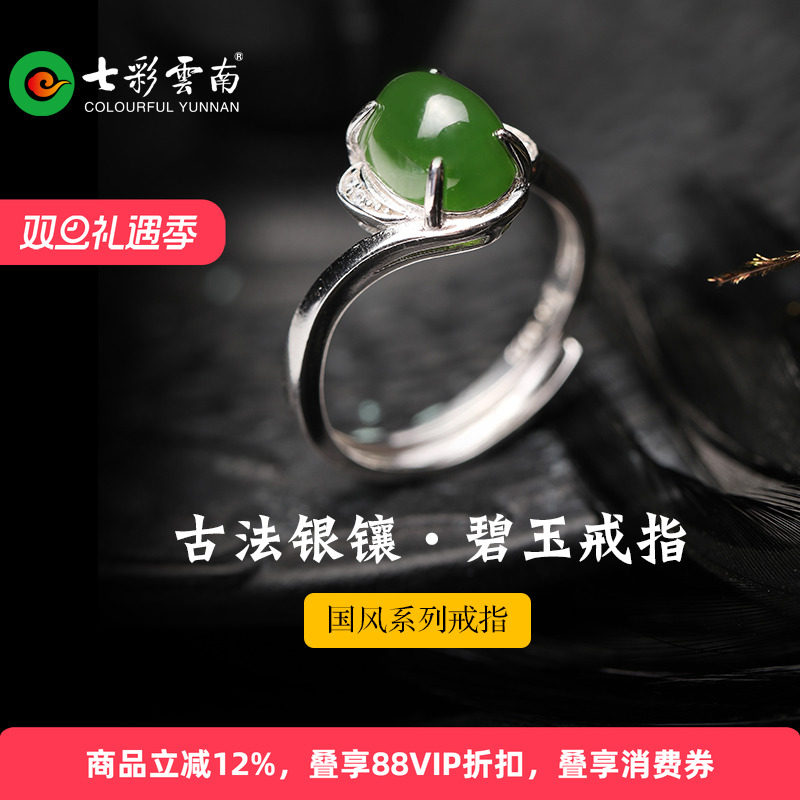 七彩云南和田玉碧玉戒指银镶嵌玉石新中式国风款玉环国风礼物礼物