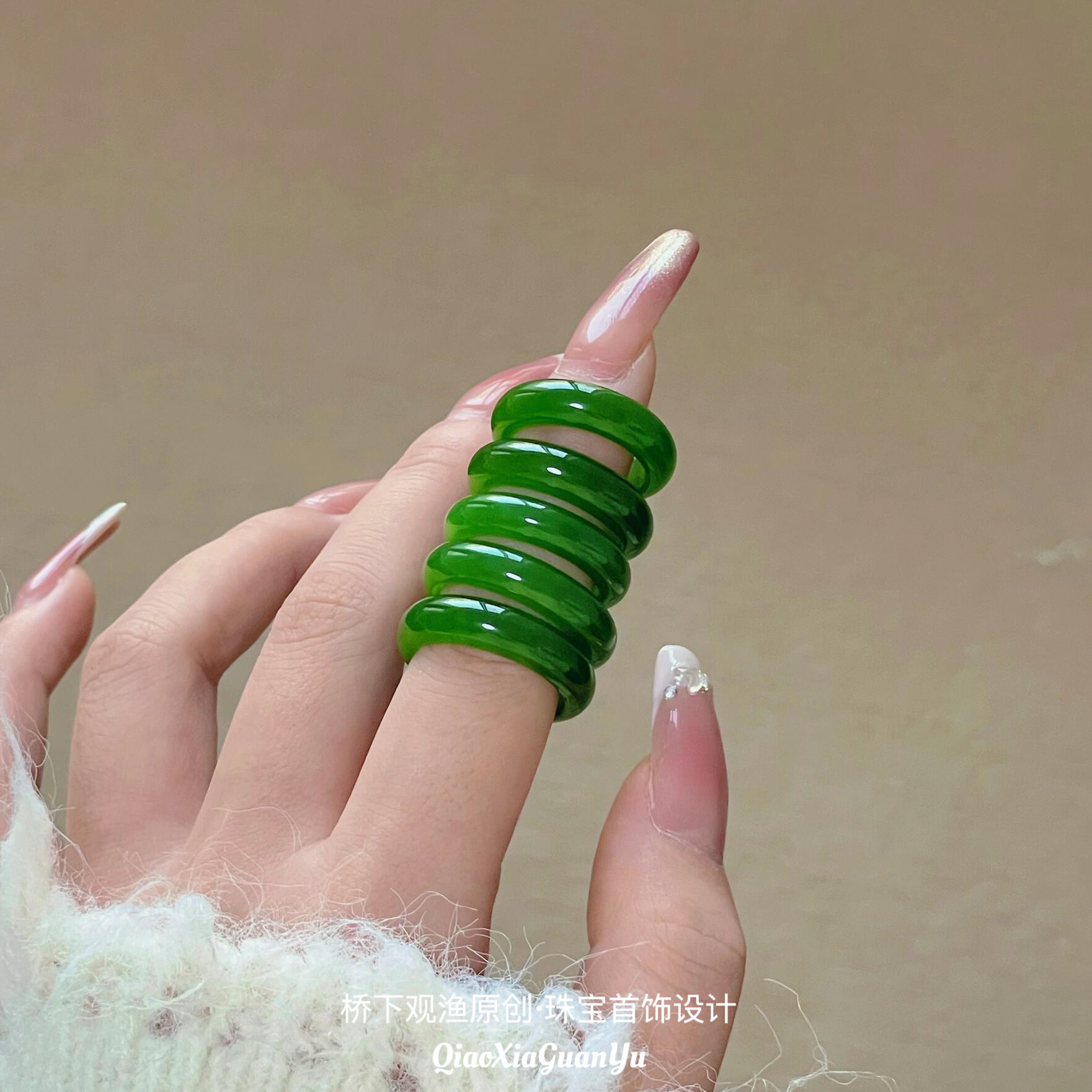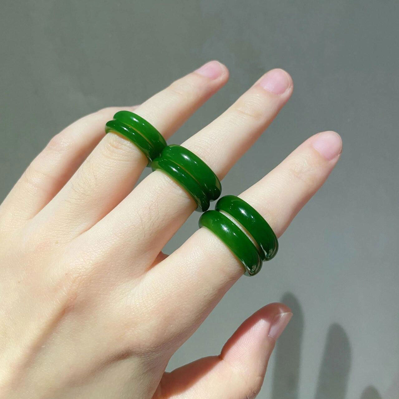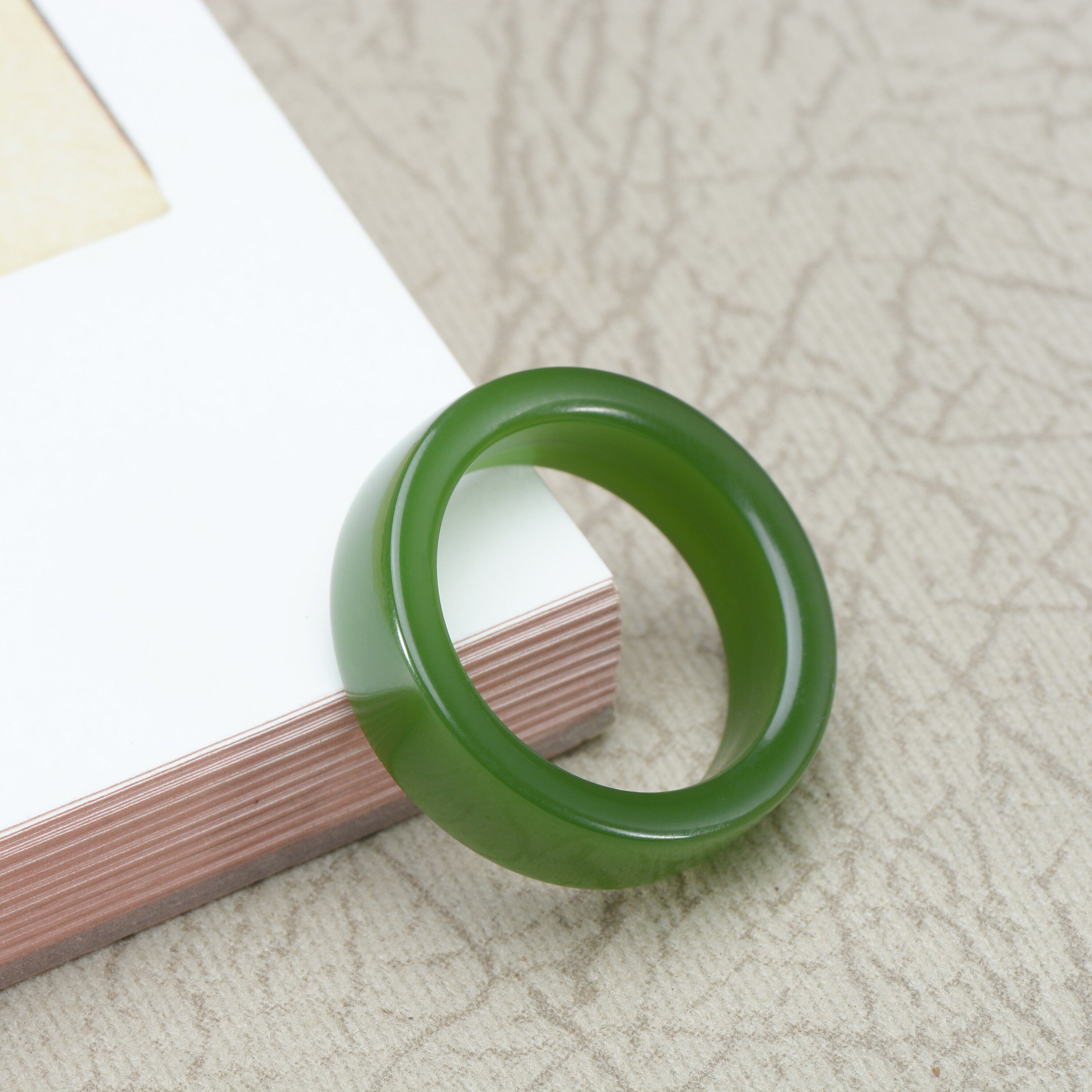 仿新疆和田外蒙料戒指仿碧玉戒指菠菜绿戒指绿色直筒戒指绿色戒指