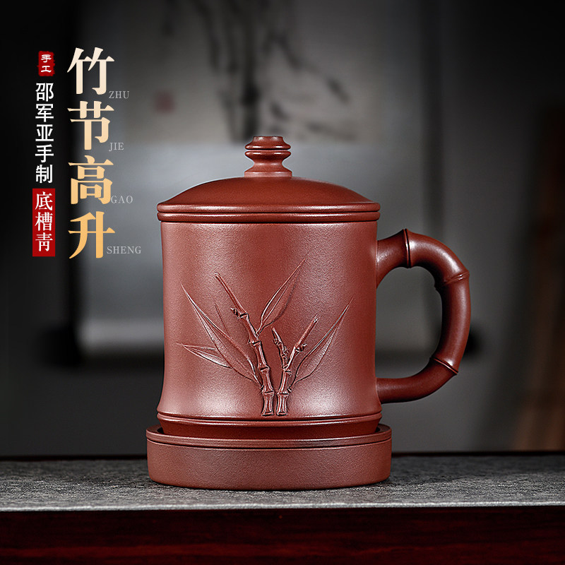 宜兴纯紫砂杯真正品纯手工大容量男士竹节高端泡茶杯子送领导长辈
