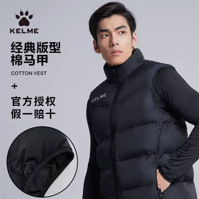 KELME卡尔美训练运动棉马甲男足球背心加厚外套冬训坎肩立领马夹