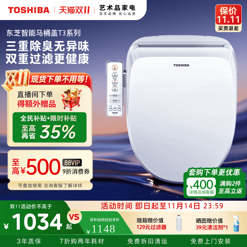 东芝智能马桶盖全自动家用通用即热加热抗菌电动马桶座圈T3p/T400