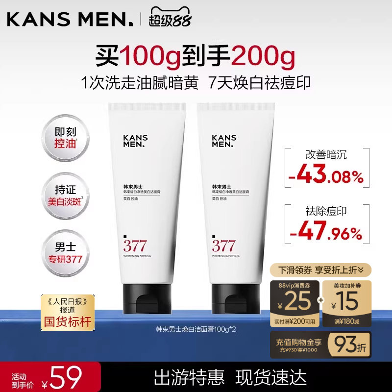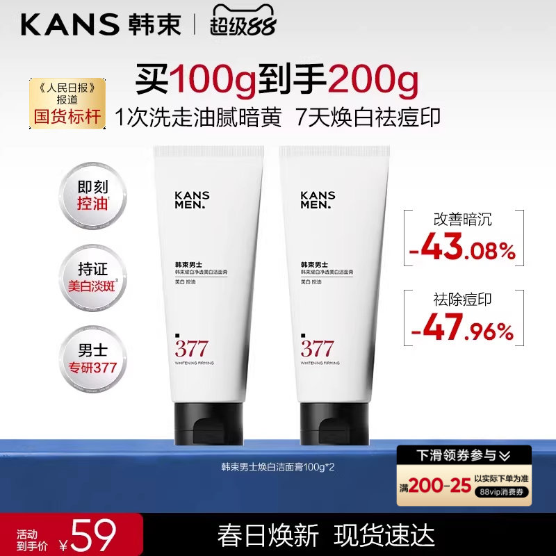 韩束男士美白小白泥洗面奶氨基酸祛痘毛孔淡化痘印专用洁面乳男生