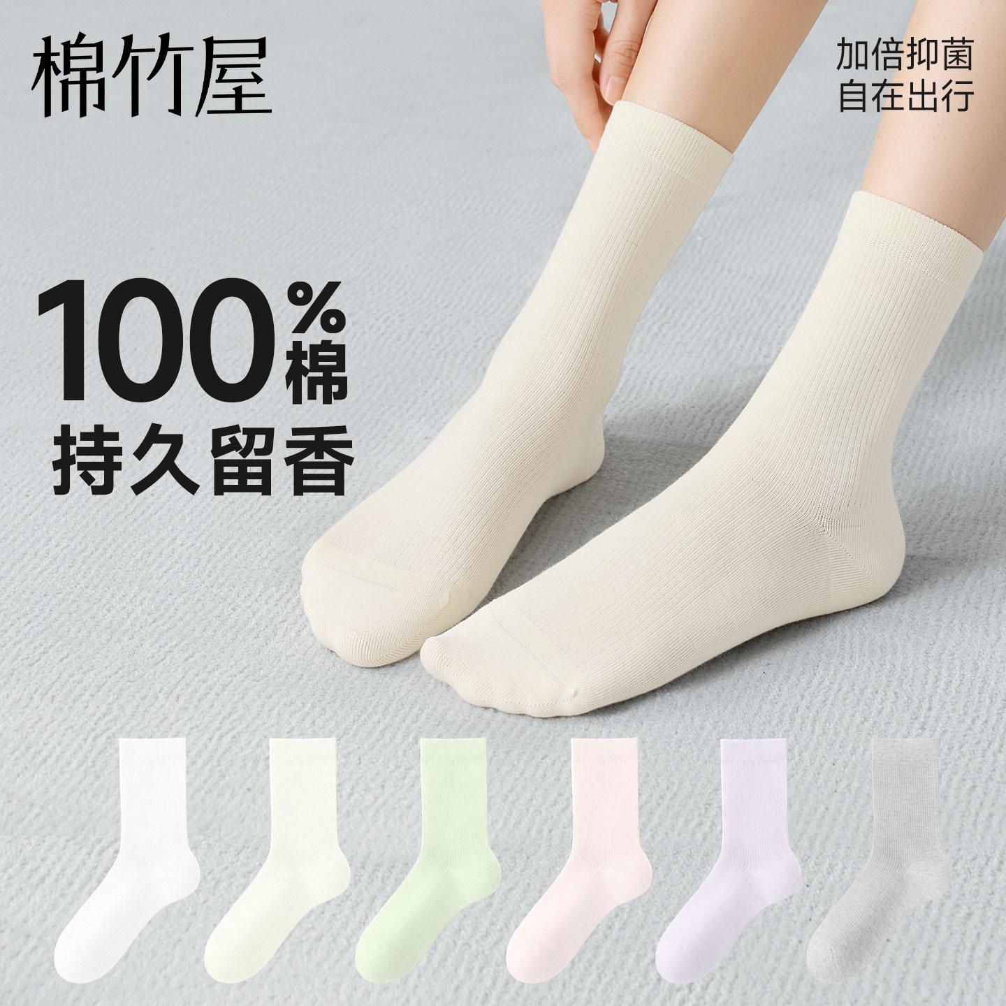 优质纯棉中筒袜子女士春季全棉防臭防脚气薄款运动秋冬长袜夏无骨