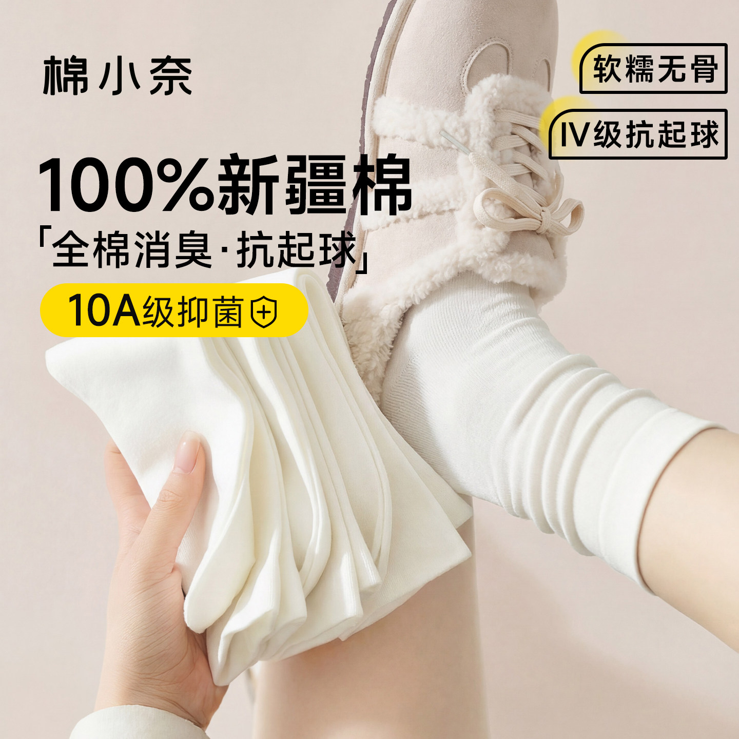 袜子女款纯棉中筒袜春秋季2026新款爆款防臭吸汗无骨白色女士短筒
