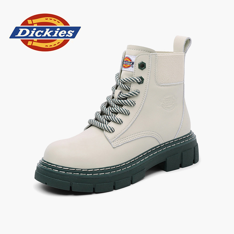 Dickies女士马丁靴2025新款冬英伦风白色短靴小个子厚底增高靴子