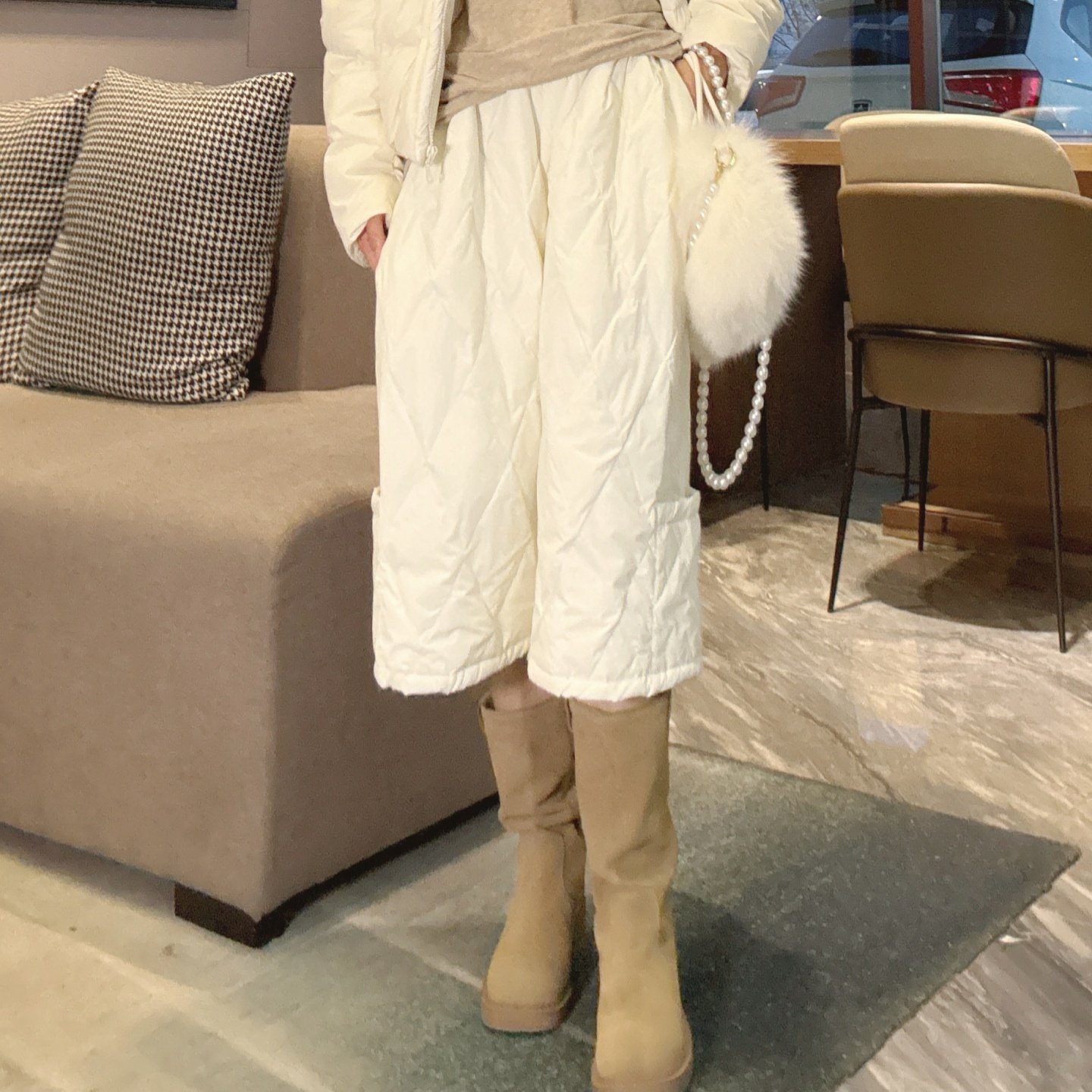 外穿羽绒裤女士2025新款冬季六分裤配靴子白鸭绒今年流行超火裤子