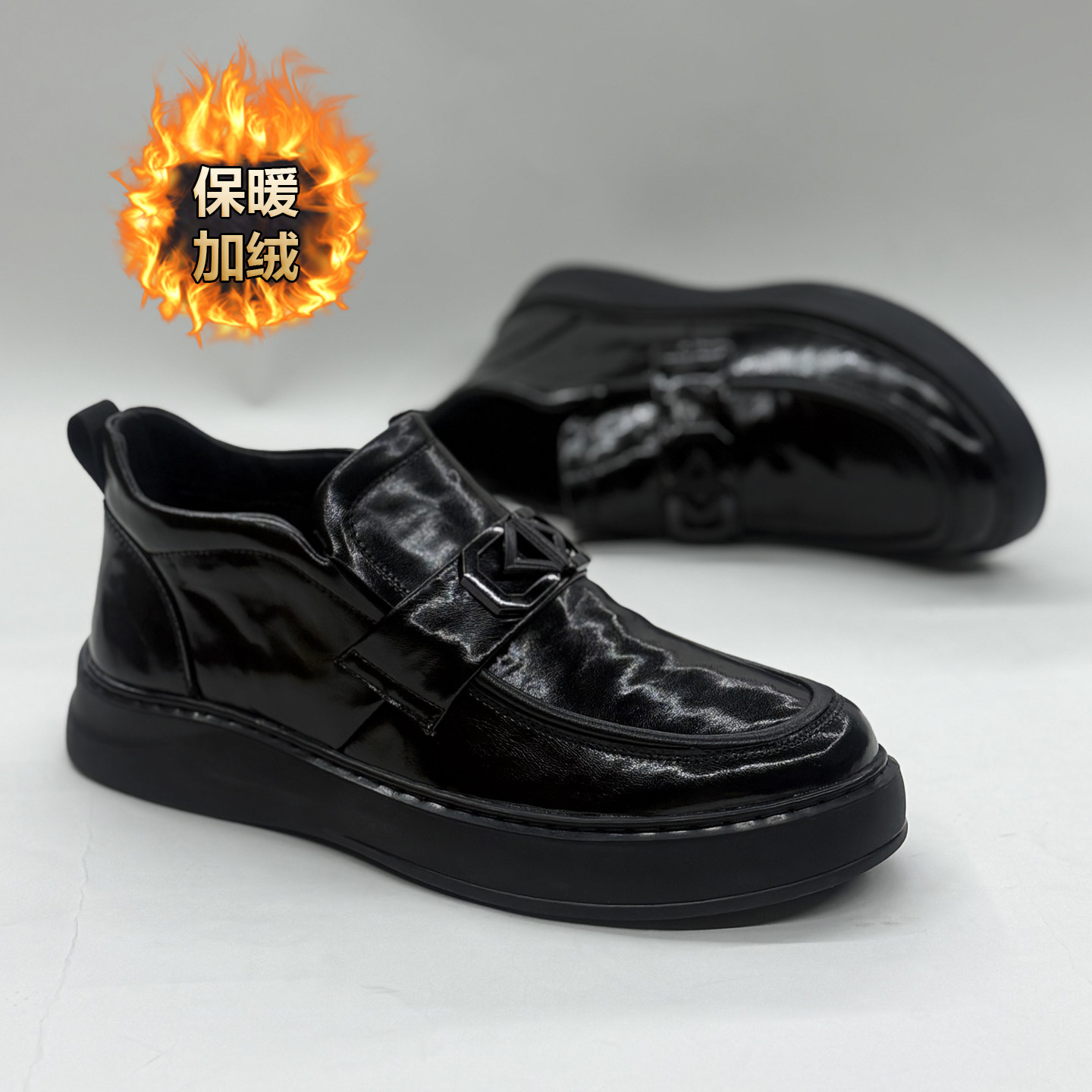 - 皮鞋男加绒保暖
