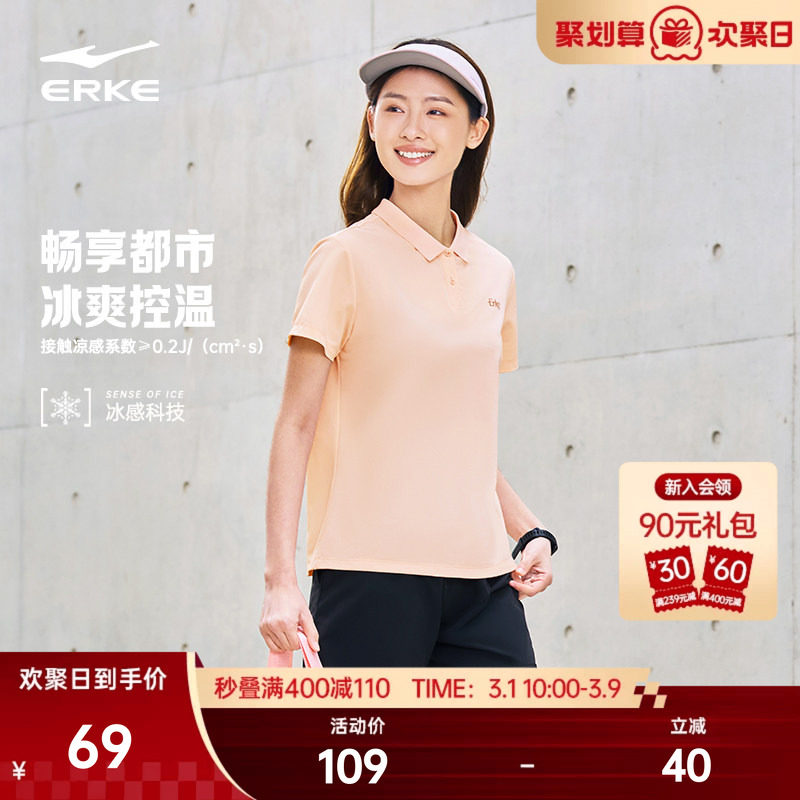 鸿星尔克polo衫女夏季女士冰感冰丝运动翻领短袖t恤女款上衣女装