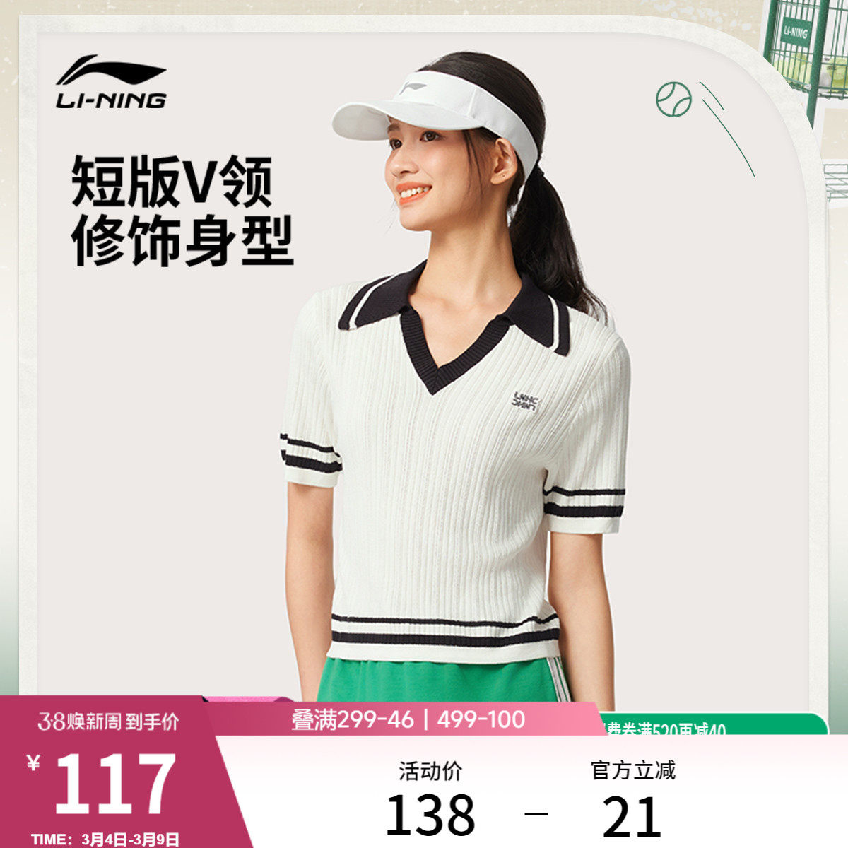 李宁POLO衫女士夏季V领T恤修身女装网球上衣针织翻领运动短袖女