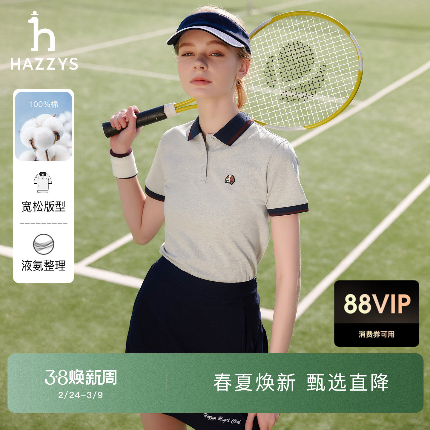 【春夏甄选】Hazzys哈吉斯短袖polo衫女休闲T恤运动撞色翻领上衣