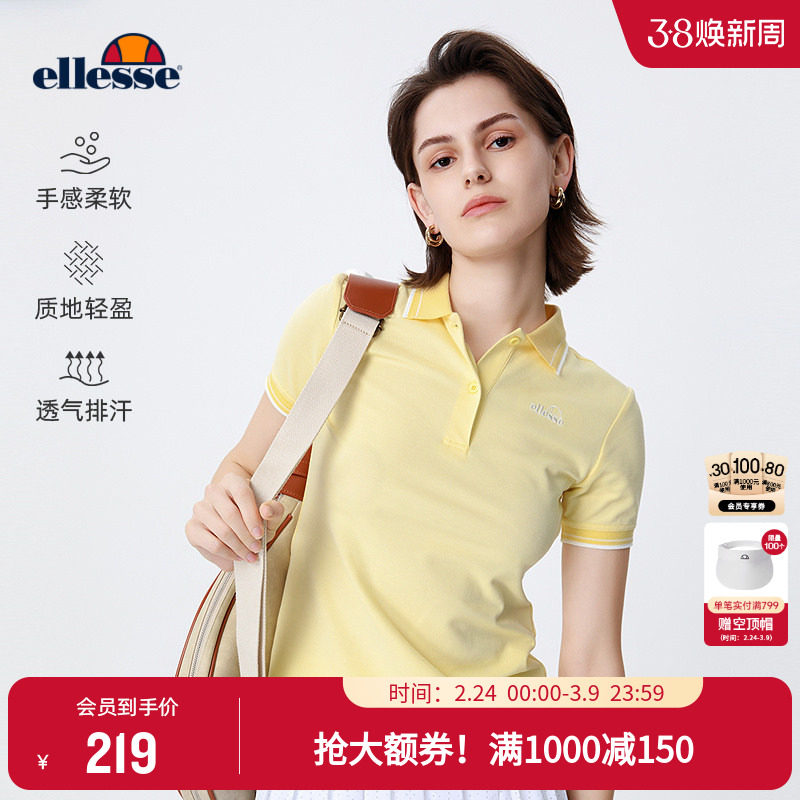 ellesse小贝壳polo短袖女春夏运动跑步休闲翻领跑步修身T恤上衣