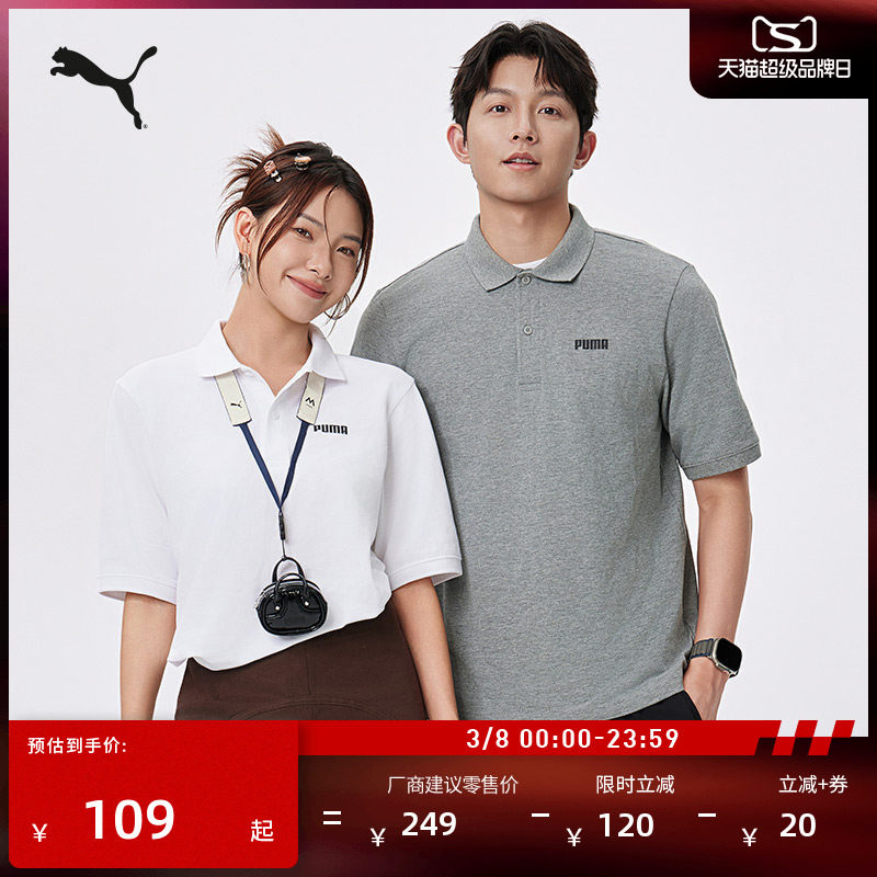 商务短袖运动T恤POLO衫男女PUMA彪马新款夏季白色翻领上衣 690644