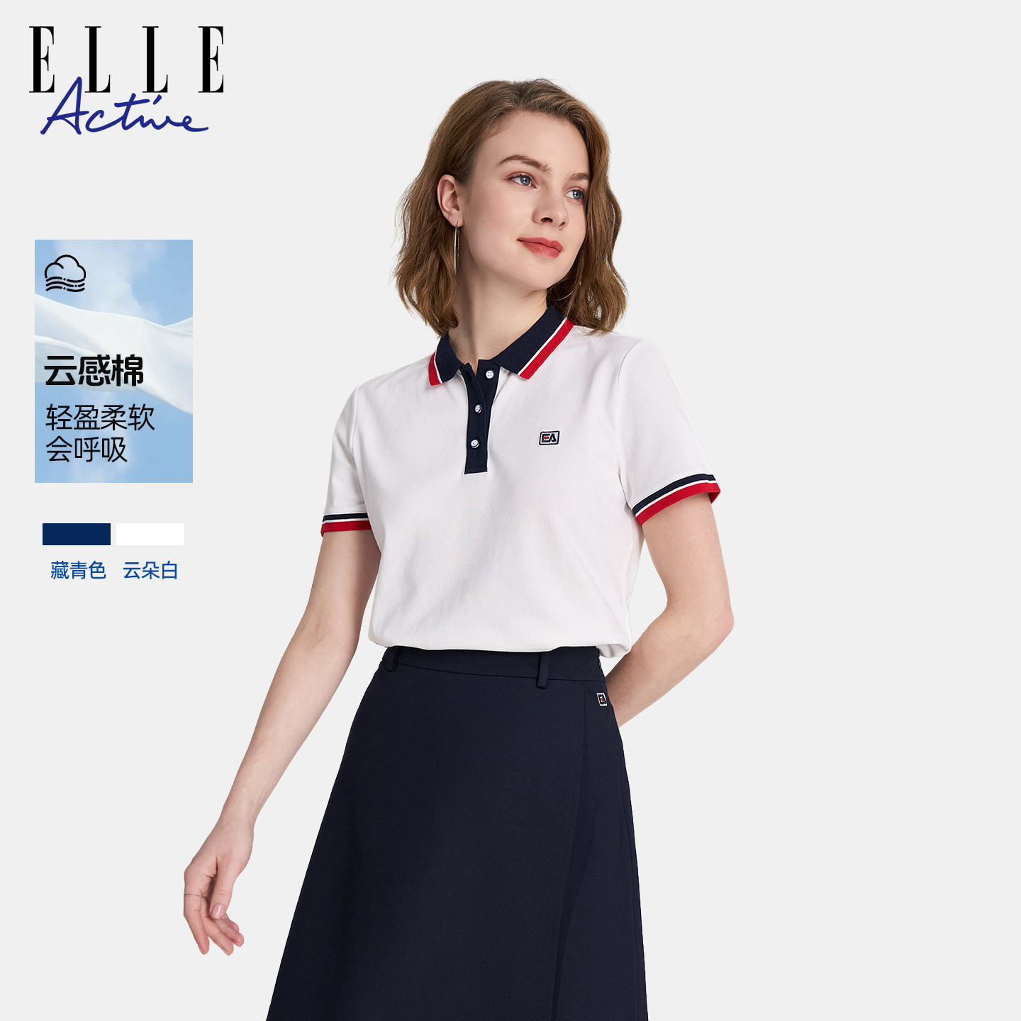 ELLE Active户外穿搭白色上衣运动polo衫女2026春夏款翻领短袖t恤