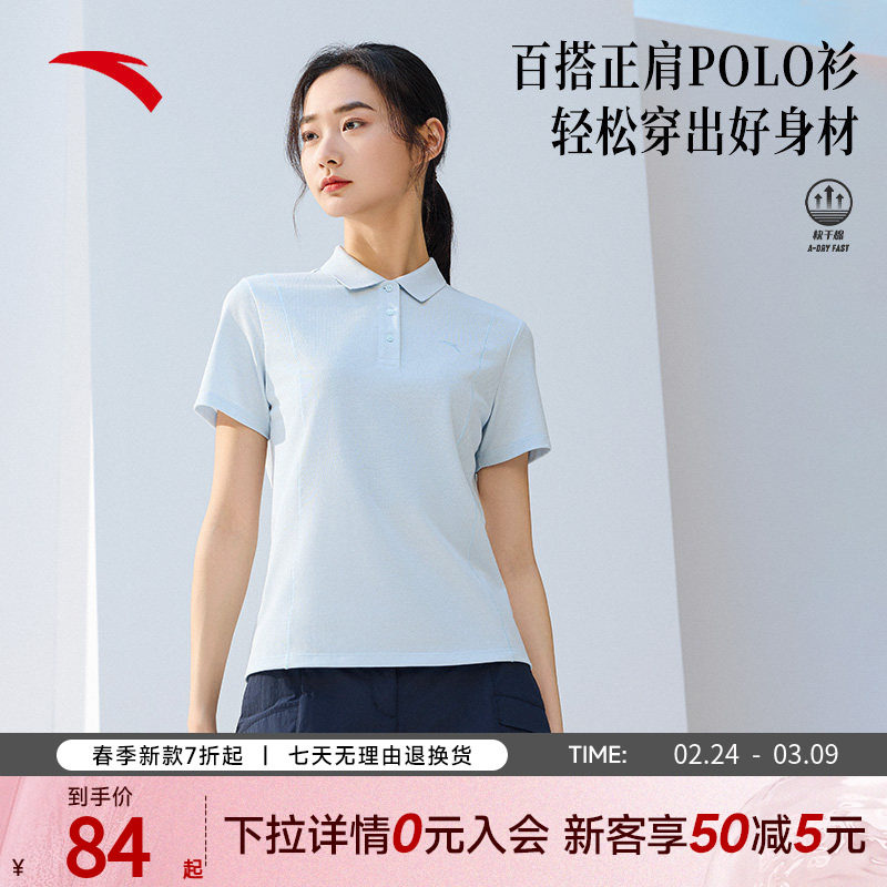安踏POLO衫女短袖公主线夏季新款快干棉翻领透气休闲T恤正肩上衣