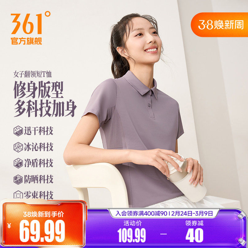 361运动T恤女装2026夏季新款冰感透气POLO衫女士修身速干翻领短袖