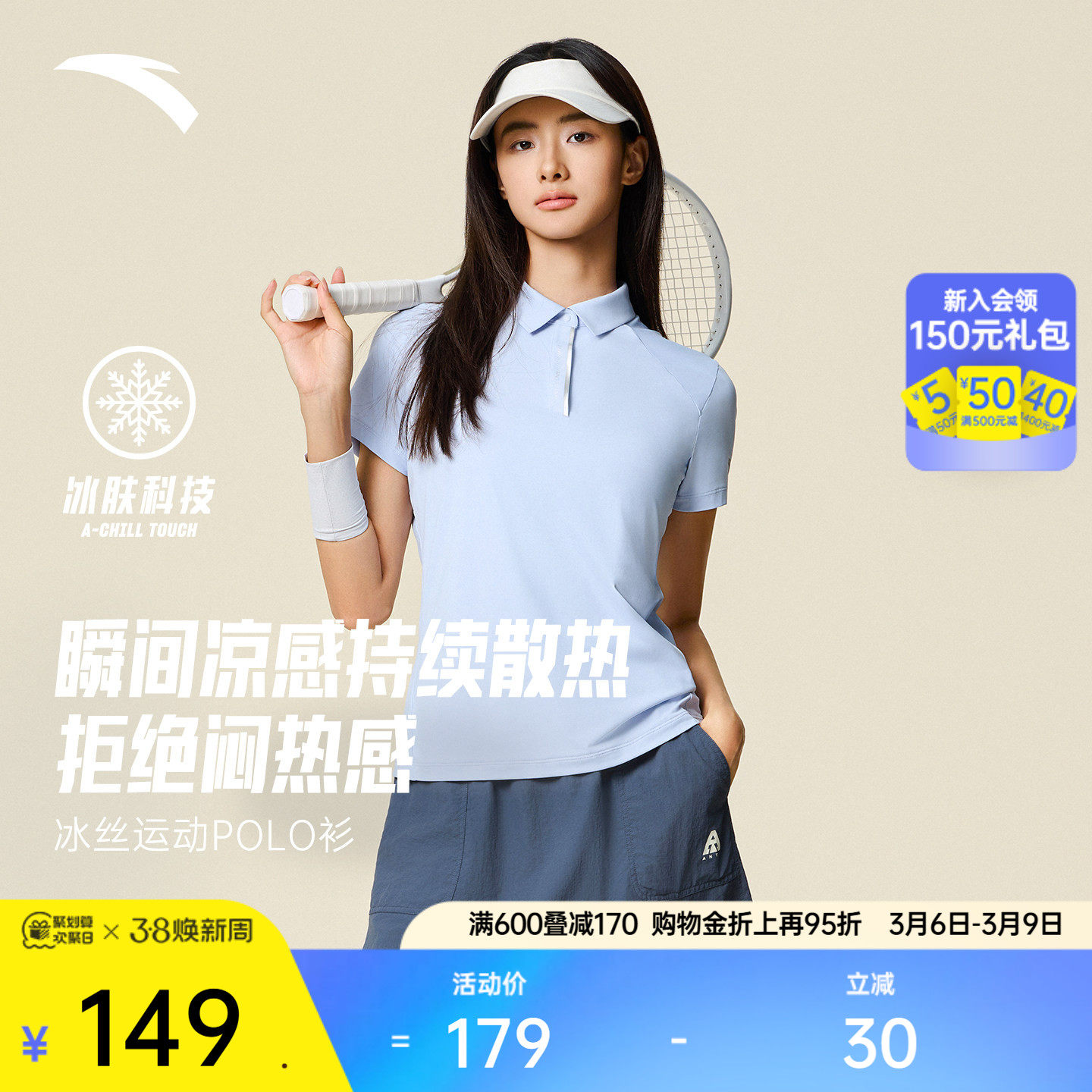 安踏冰丝polo衫丨翻领短袖t恤女夏季网球羽毛球运动上衣162537123