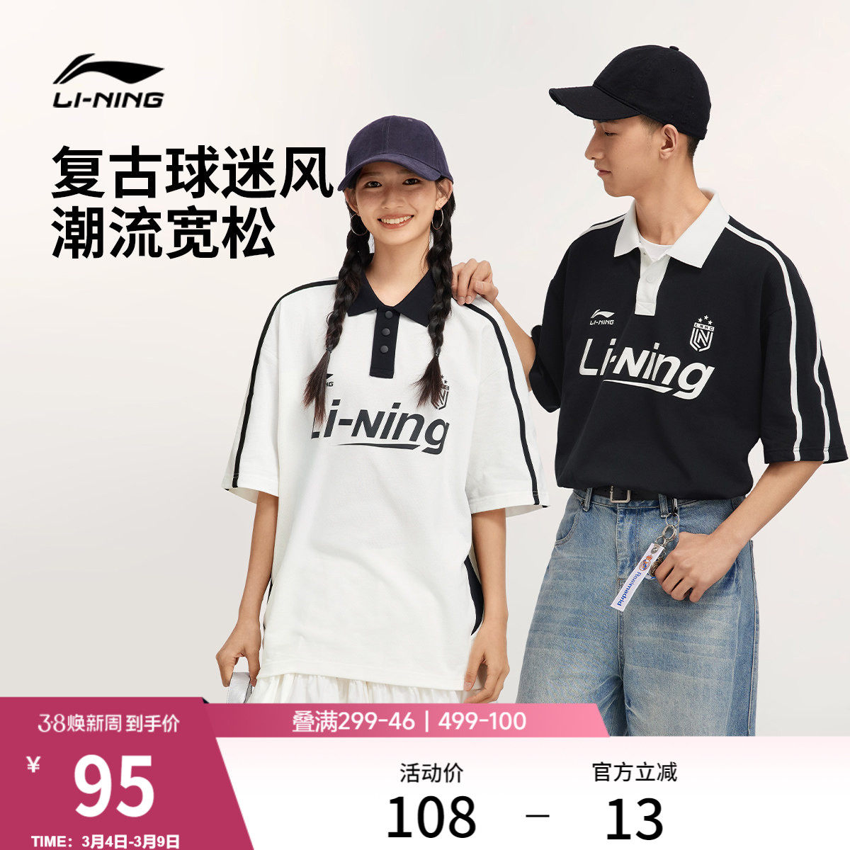 李宁POLO衫女官方新款春夏情侣翻领半袖宽松T恤美式运动短袖男士