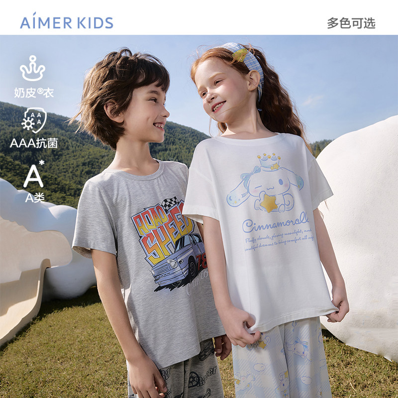 爱慕儿童男女孩套头短袖家居服睡衣裤酷洛米IP家居抗菌A类奶皮
