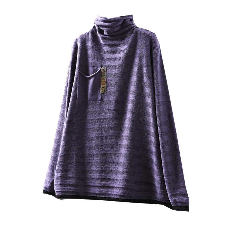 紫色半高领棉线毛衣女宽松长袖秋装新款文艺休闲百搭遮肉套头上衣