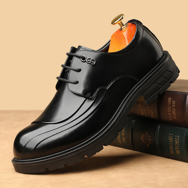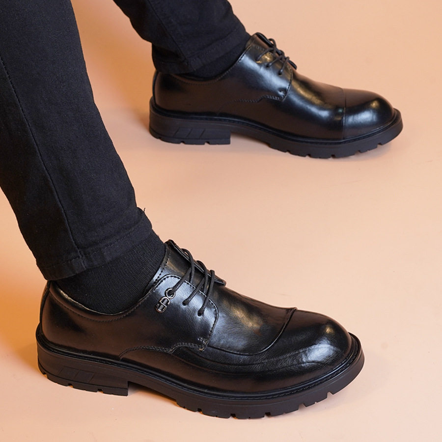 2025新款男士圆头商务皮鞋男真皮透气正装系带款潮鞋日常休闲男鞋