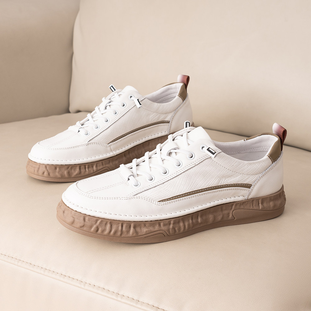 豆撤柜真皮!潮流休闲皮鞋小白鞋软底系带舒适防滑日常休闲男鞋子