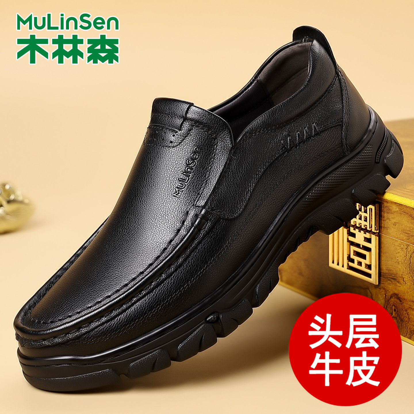 木林森男士头层牛皮皮鞋商务通勤鞋舒适透气软底百搭日常休闲男鞋