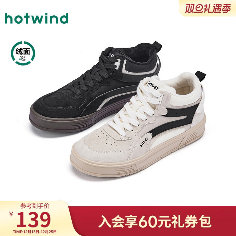 热风男鞋2025年冬季新款男士日常通勤休闲板鞋百搭厚底高帮鞋子
