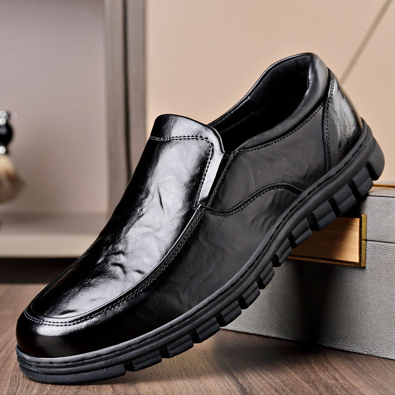 老人头皮鞋男真皮秋季日常休闲男鞋厚底耐磨懒人鞋透气中年豆豆鞋