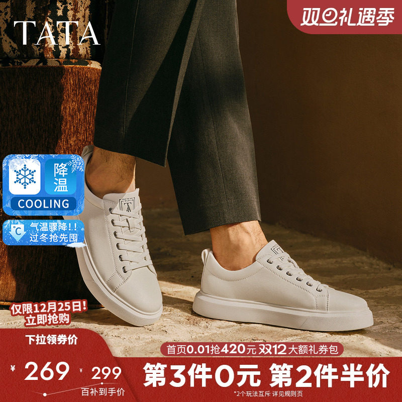 Tata他她男鞋休闲百搭板鞋商务软底男士小白鞋2025秋新款日常通勤