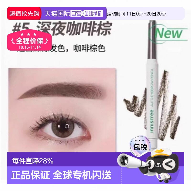 韩国正品 innisfree悦诗风吟 自动生机眉笔带眉刷7色 防水/汗现货