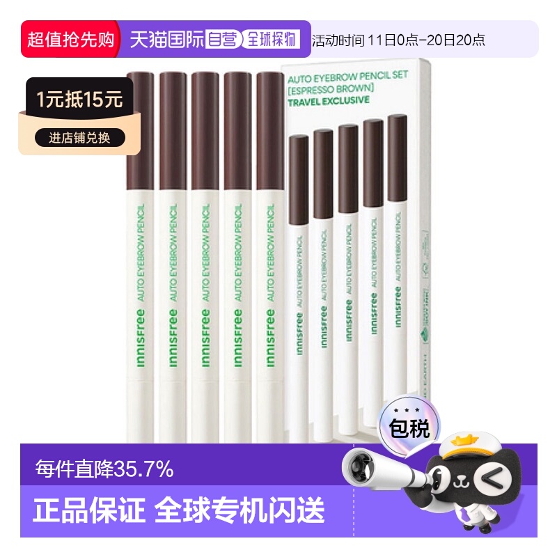 韩国innisfree悦诗风吟自动眉笔双头带眉刷自然野生眉4号5号棕