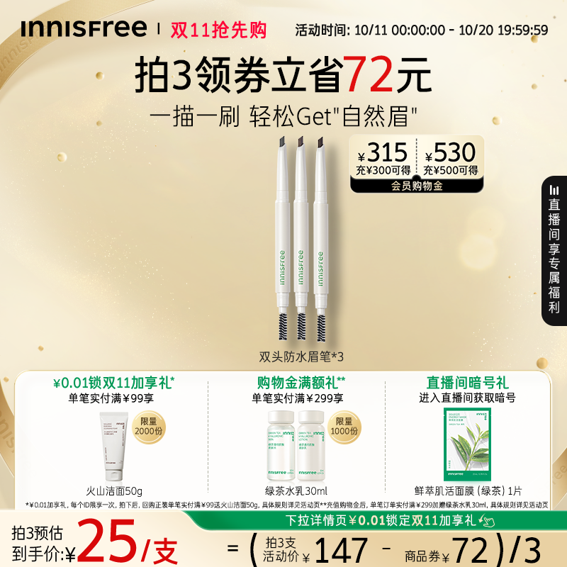 Innisfree悦诗风吟生机自动双头眉笔防水防汗不脱色不晕染持久