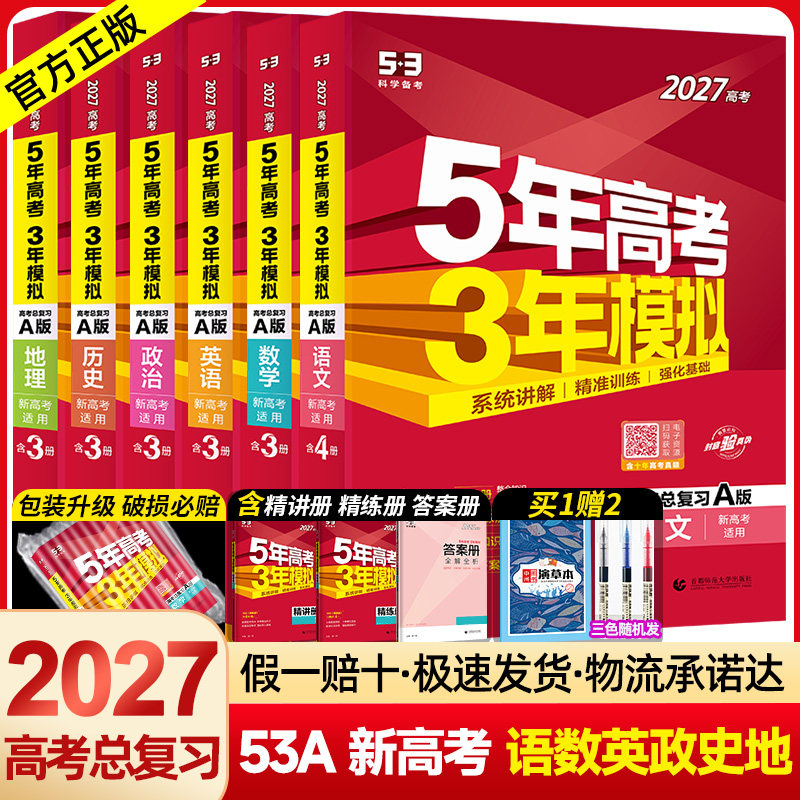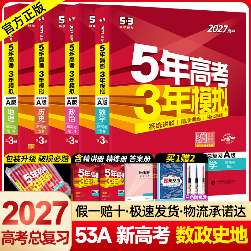 新高考版/专版】2027A版五年高考三年模拟文科全套文数政治历史地理4本 5年高考3年模拟文综五三高考高中复习资料53a