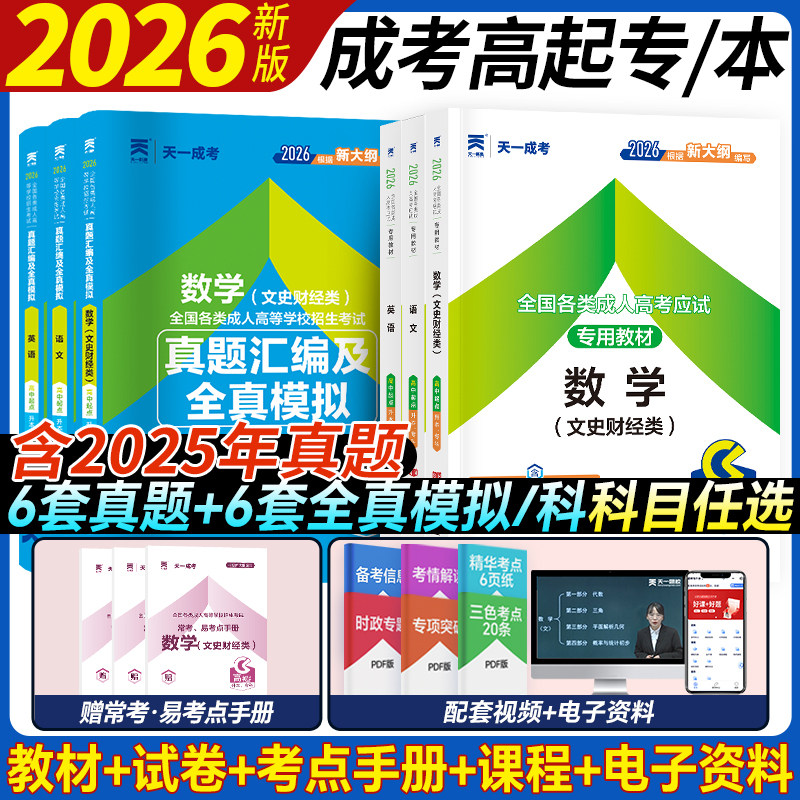 天一2026成人高考教材高升专文科教材全套语文数学外语2026年全国成人高考高中升大专文科自学书籍成人高考文史财经类2026教材试卷