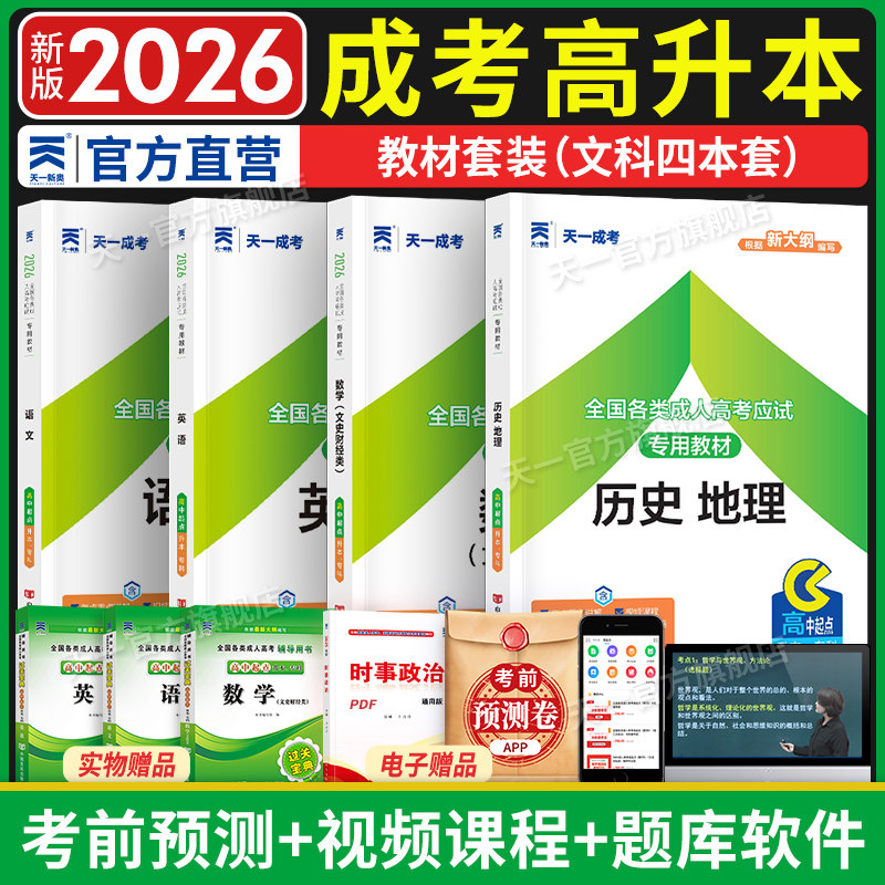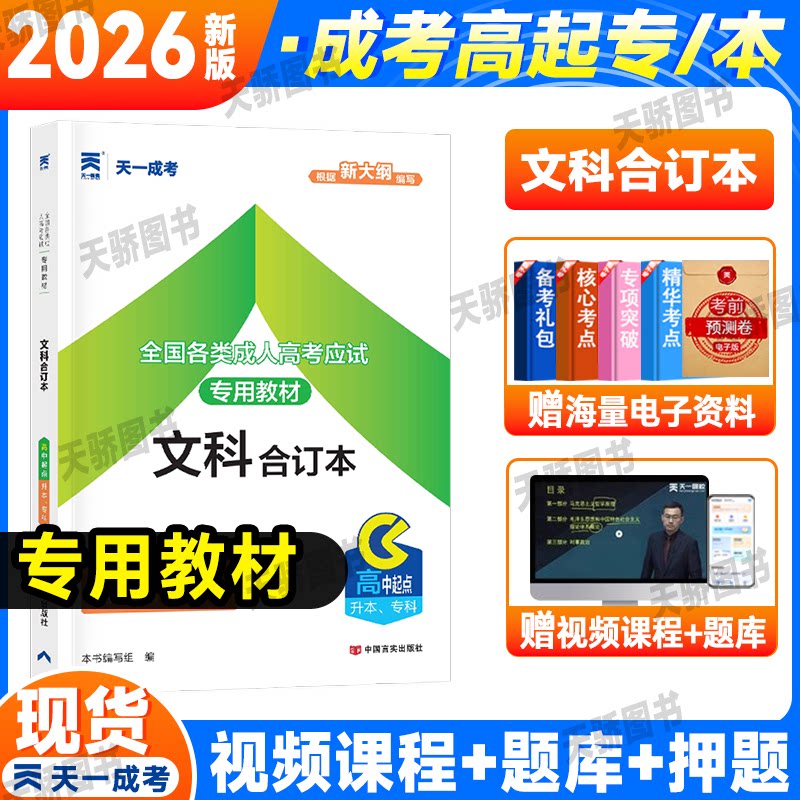 天一成人高考教材2026文科合订本高中起点升本专科全套语文英语数学中专升大专升本科自考成教函授文科高起专2026专升本全国统考书