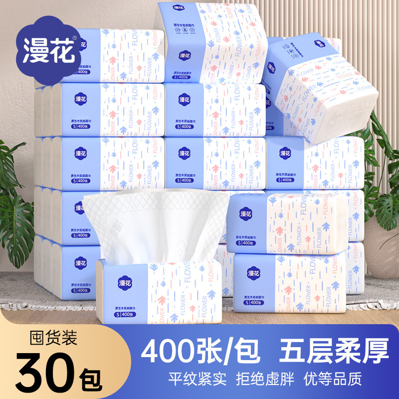 包邮漫花抽纸家用餐巾纸400张24包整箱装纸抽面巾纸囤货卫生纸巾