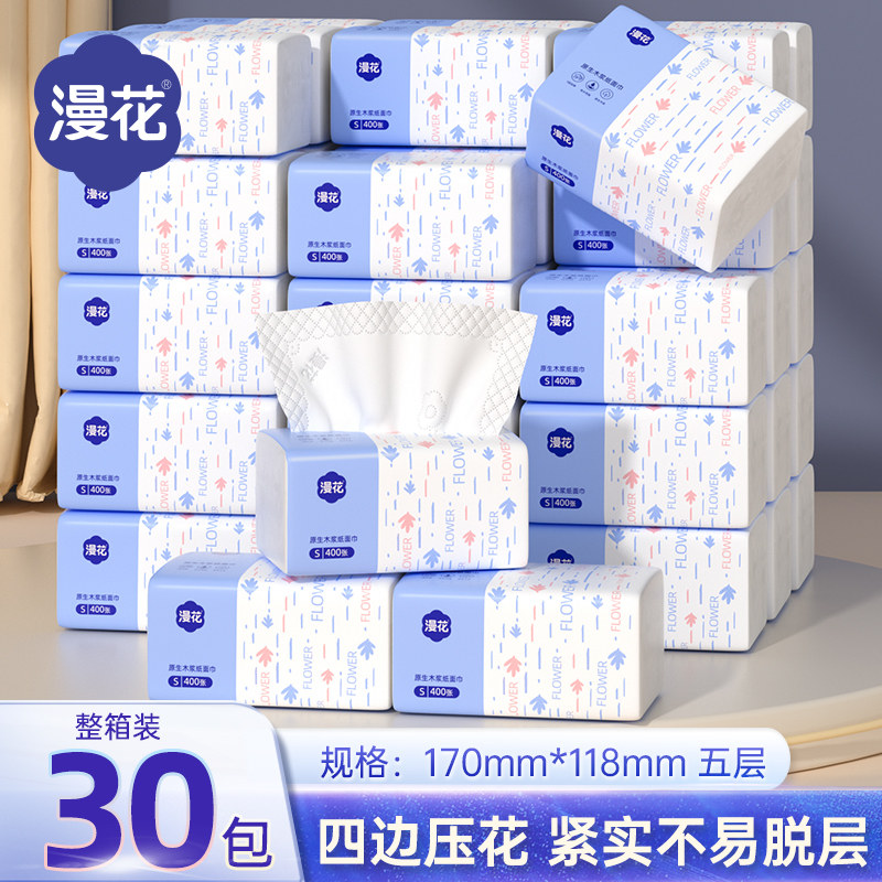 漫花抽纸30包整箱纸巾发原木餐巾纸5层加厚卫生纸家用纸抽实惠