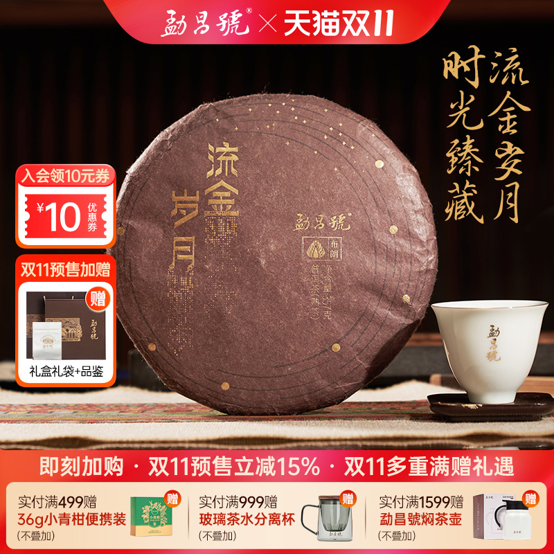 勐昌号茶叶流金岁月普洱茶熟茶2021年普洱饼茶357g礼盒送人礼品