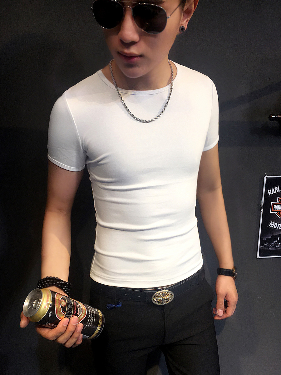 - 纯色圆领男打底衫短袖