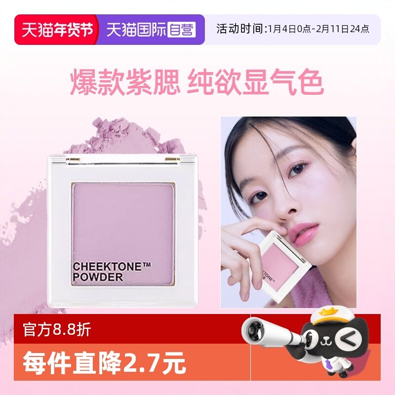 tonymoly托尼魅力腮紫膨胀色提亮面中单色腮红细腻自然哑光显嫩