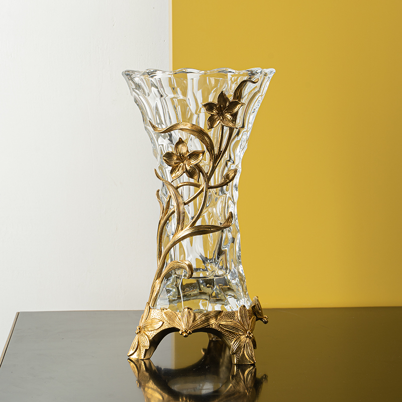 欧式水晶玻璃镶铜花瓶摆件客厅插花花瓶 美式高档奢华玄关摆设品