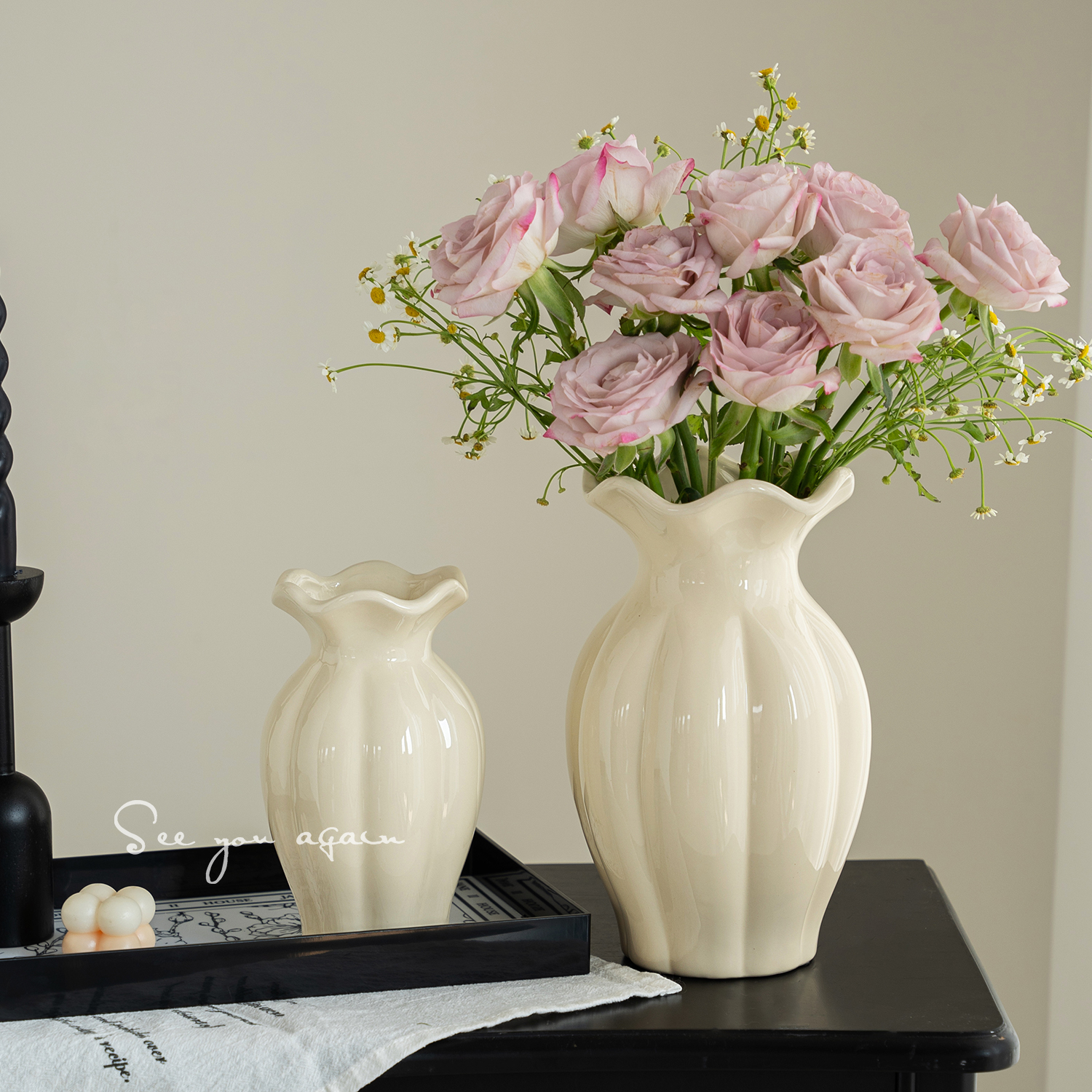复古美式简约奶油风陶瓷花瓶摆件水培插花玫瑰客厅餐桌装饰高级感