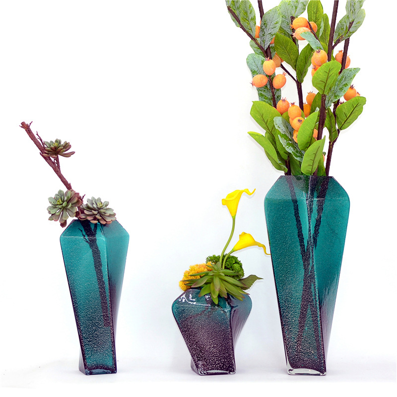 创意手工彩色玻璃花瓶 美式乡村派花瓶摆件 几何形玻璃本色摆饰