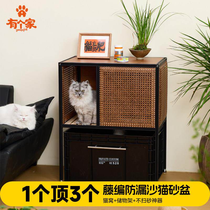 inFluffy茸里-实木猫砂盆超大码封闭式顶入式大空间日式木猫厕所