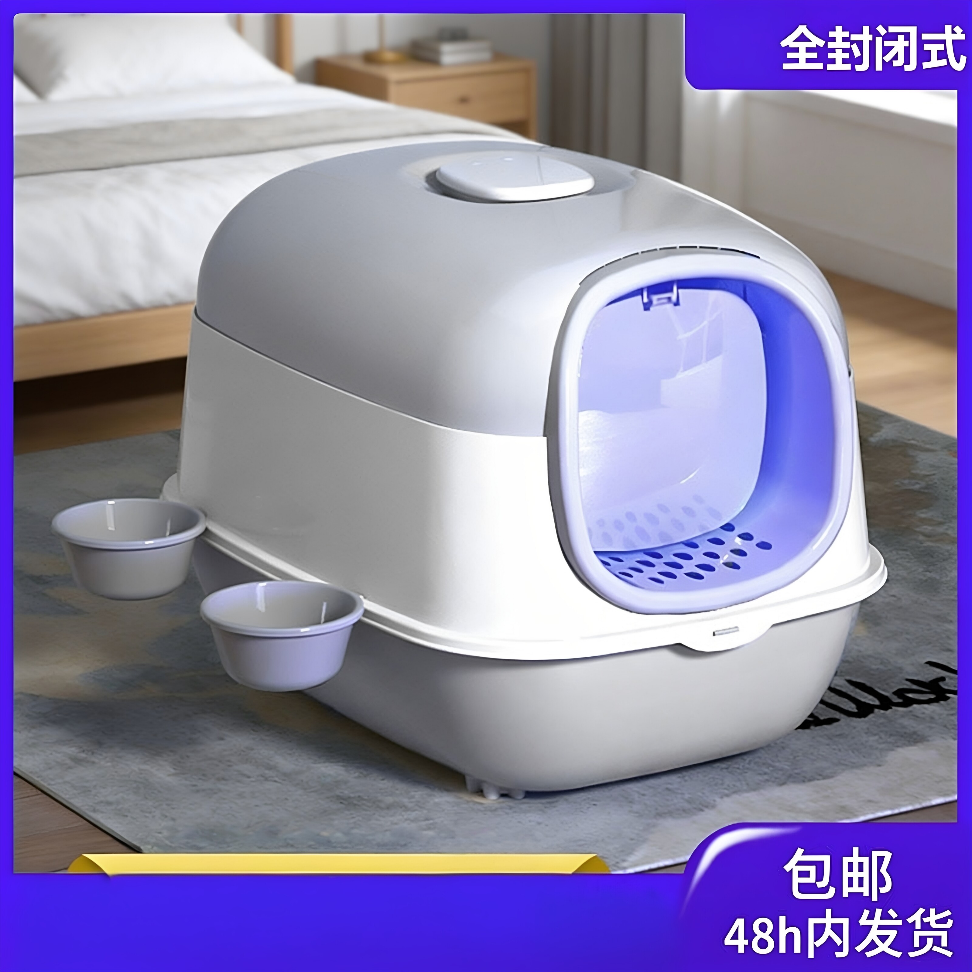 新品。猫砂盆大号猫厕所半封闭猫咪沙盆大码双层S猫砂盘特大号除