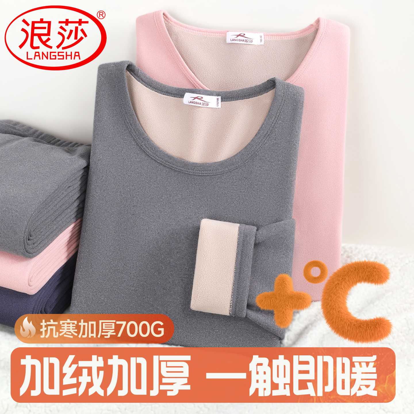 浪莎保暖内衣男士加绒加厚套装羊羔绒发热打底保暖衣女秋衣裤冬季