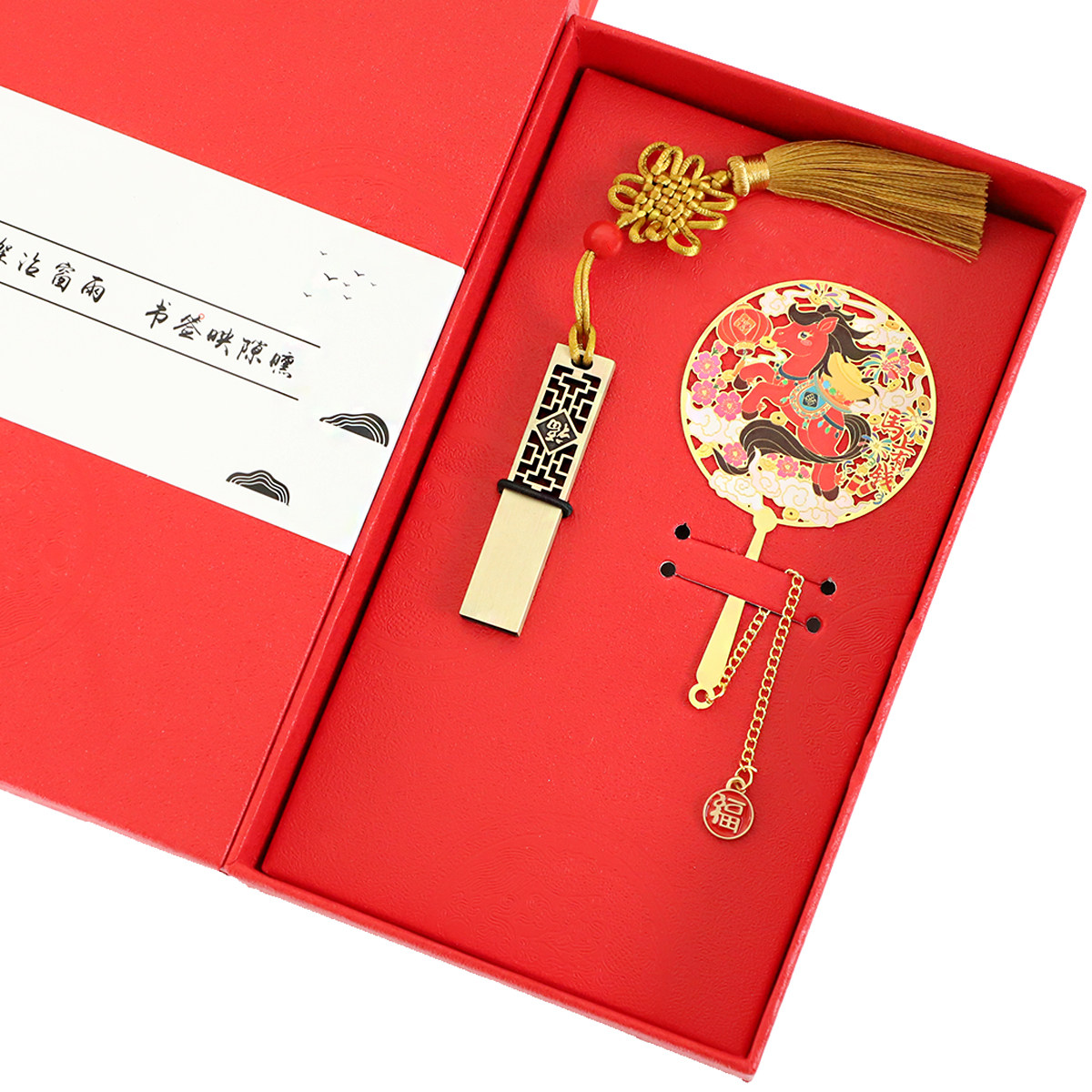 马年金属书签马上有福中国风创意生肖新年礼物文创U盘刻字送朋友