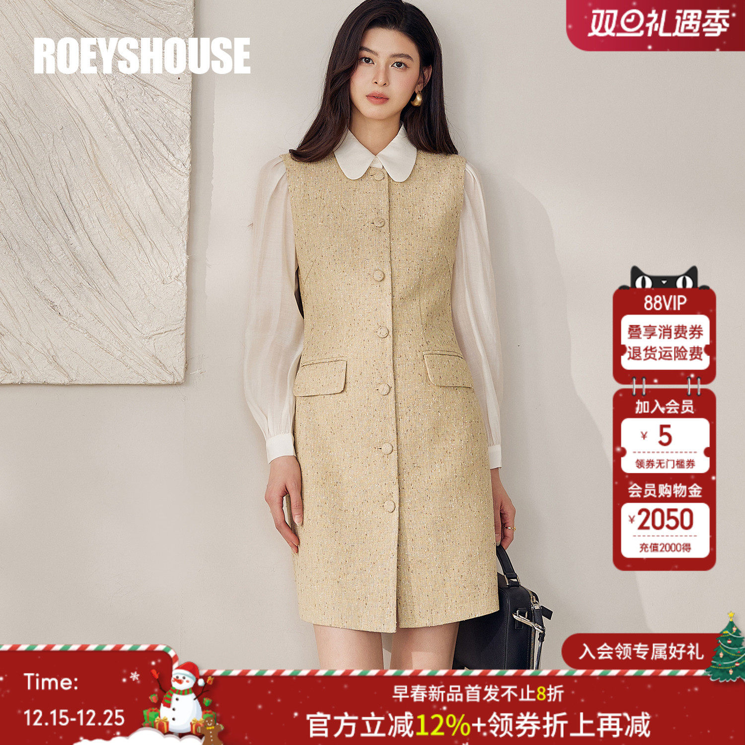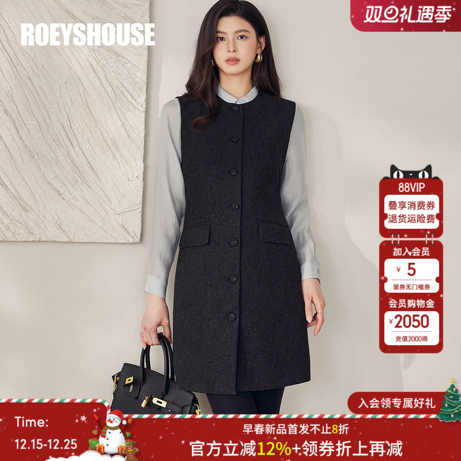 罗衣知性肌理粗花呢无袖连衣裙女秋冬端庄大气黑色背心中裙13258