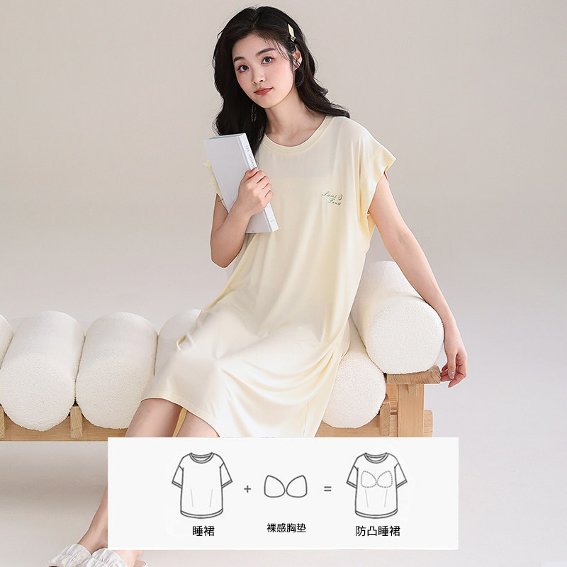 睡裙夏季女款凉感莫代尔无袖背心带胸垫一体连衣裙薄款防凸点中裙